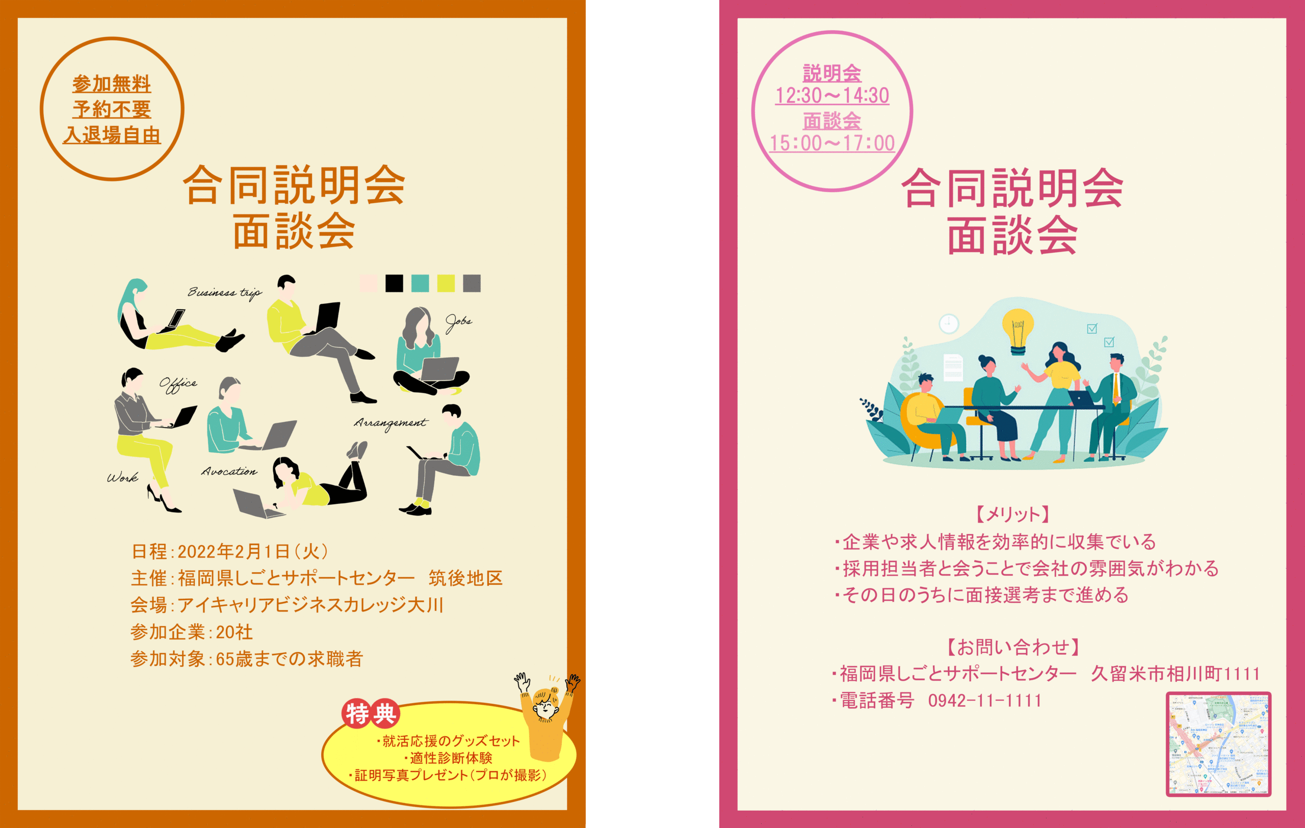 ・企業の合同説明会用のバナーを作成しました。近年の自由な働き方をイメージして、文字やイラストを配置しました。色合いを合わせて、見やすさを意識しています。